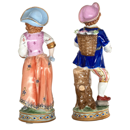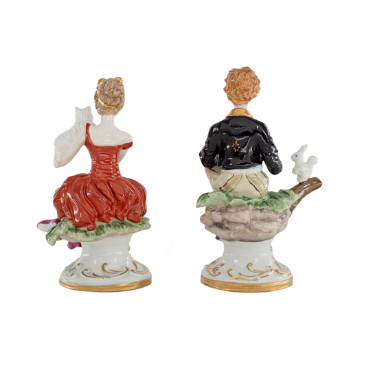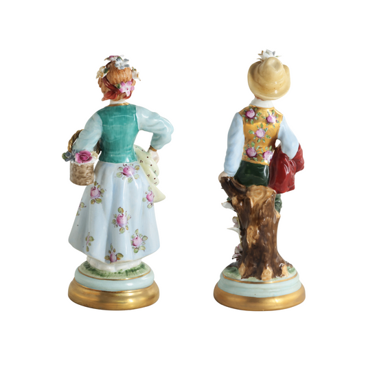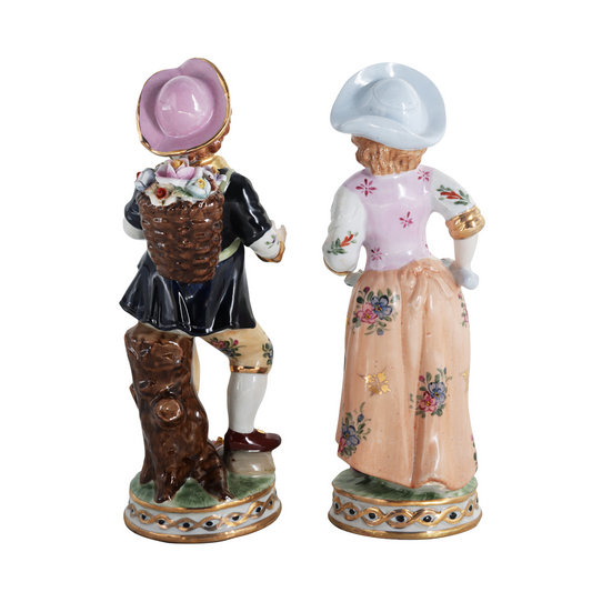 Rococo Style Porcelain Young Girl & Boy Figurine Pair