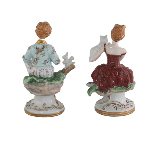 Rococo Style Porcelain Young Girl & Boy Figurine Pair