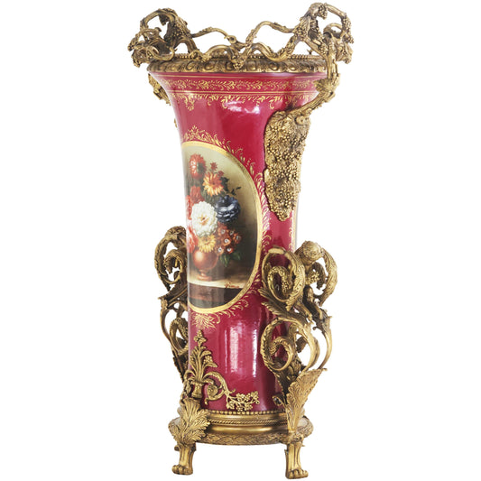 Striking Porcelain And Bronze Hand-Painted Cherub Handle Vase