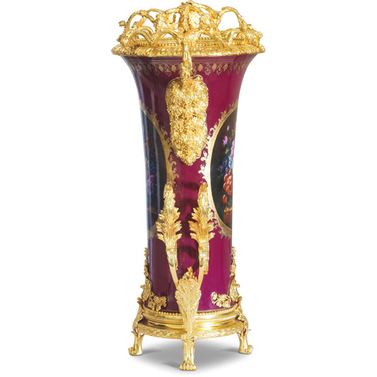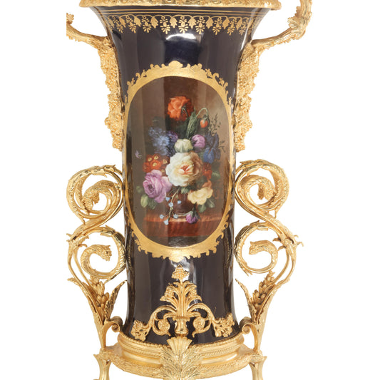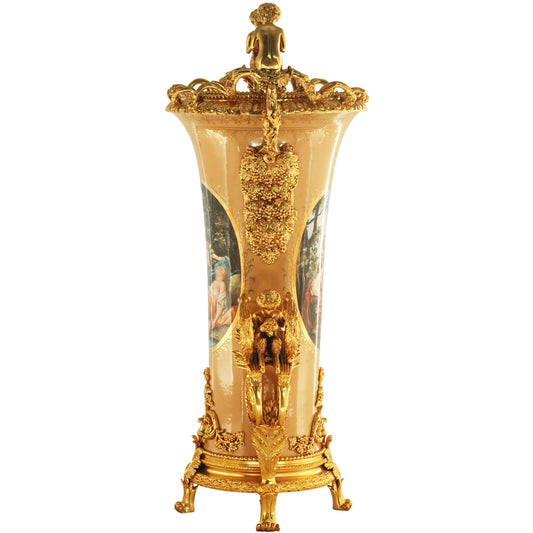 Striking Porcelain And Bronze Hand-painted Cherub Handle Vase