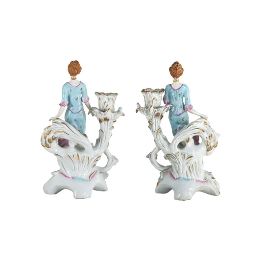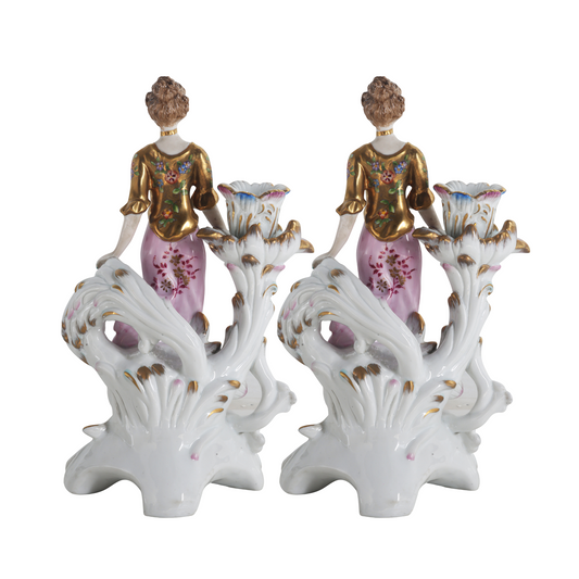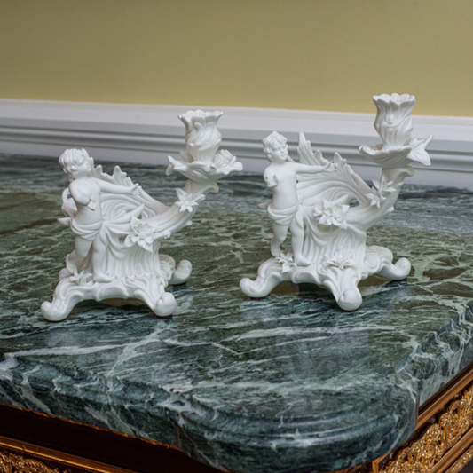 Pair of White Hand-painted Porcelain Candlestick Holders