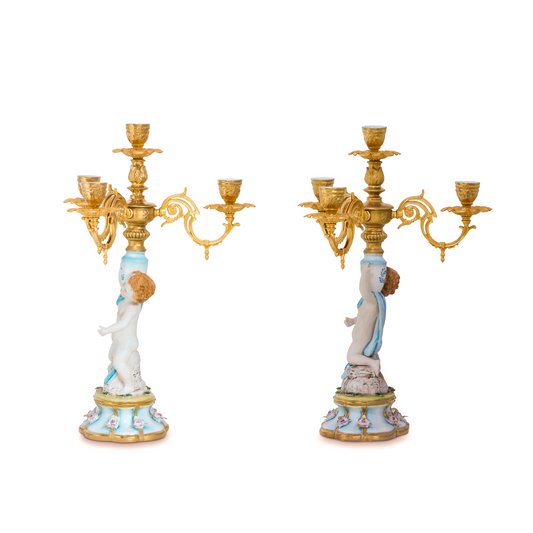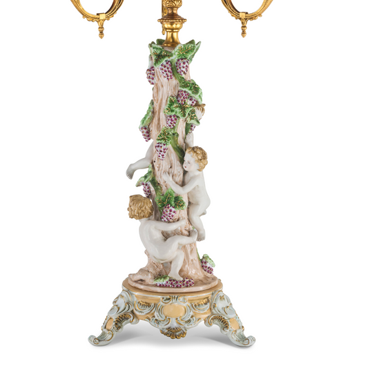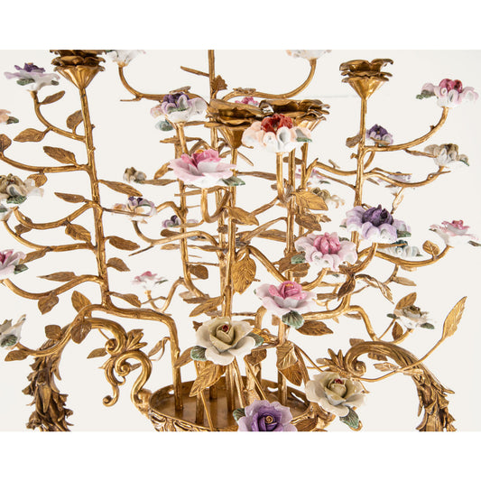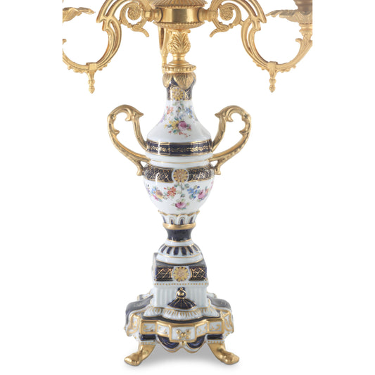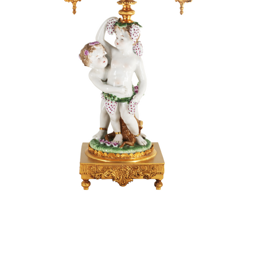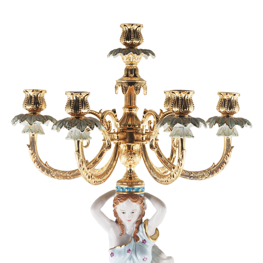 Bronze Hand-Painted Seven Cup Candle Holder With Porcelain Lady