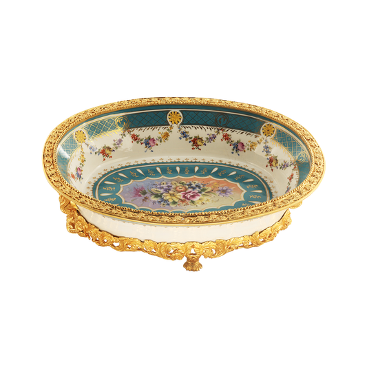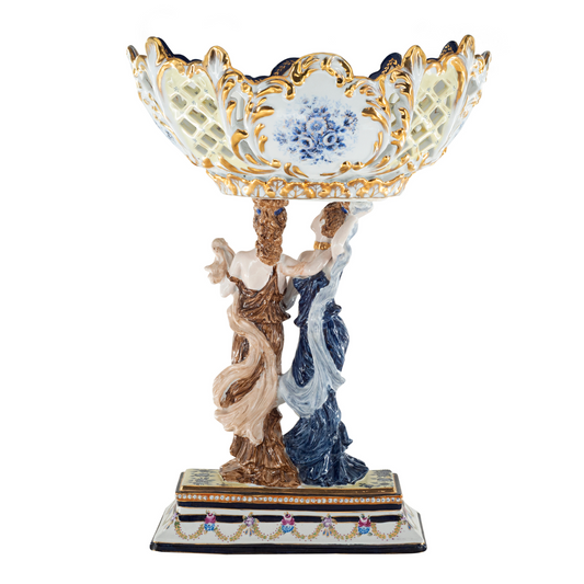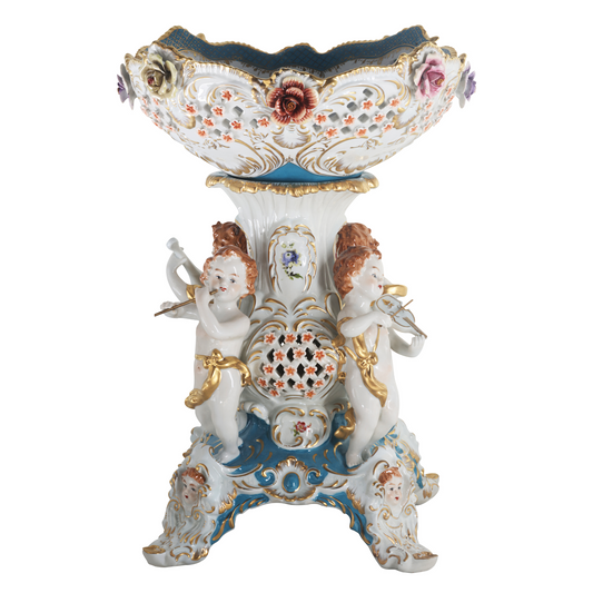 Porcelain Decorative Hand-Painted Center Piece Bowl & Candelabra