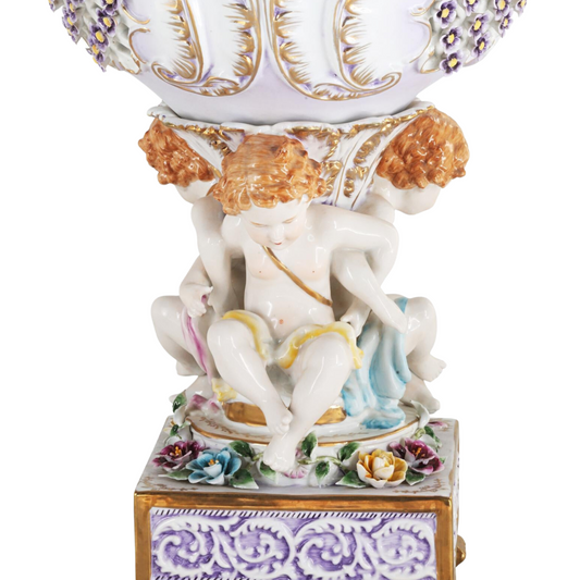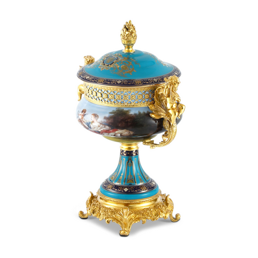 DECOELEVEN ™ Cherub Porcelain and Bronze Jar