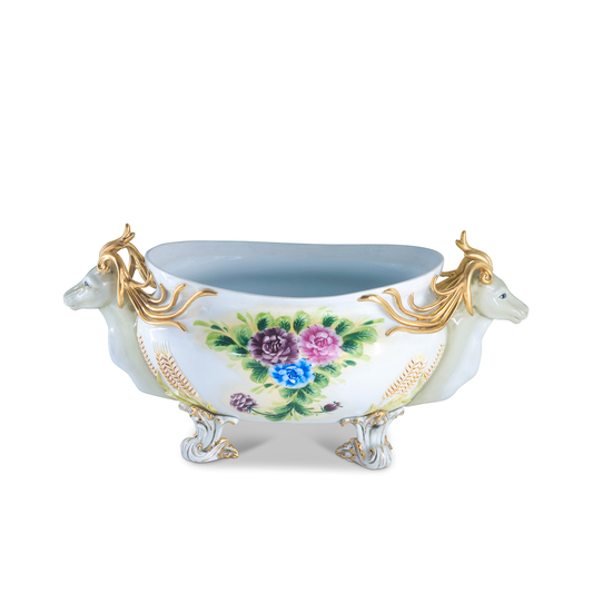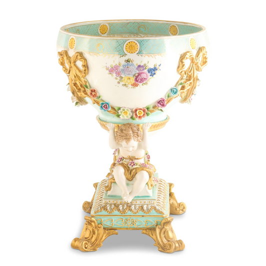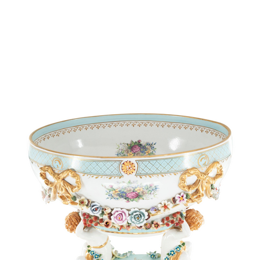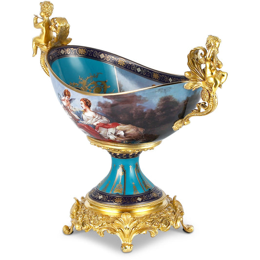 DECOELEVEN ™ Cherub Porcelain and Bronze Fruit Bowl
