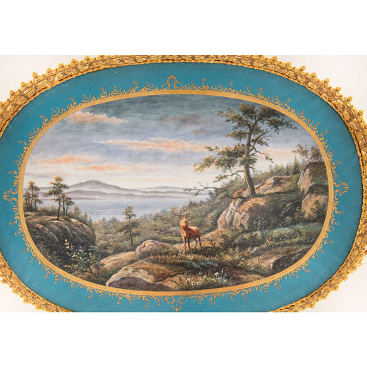 Hand-painted Stag Porcelain and Bronze Serving Tray