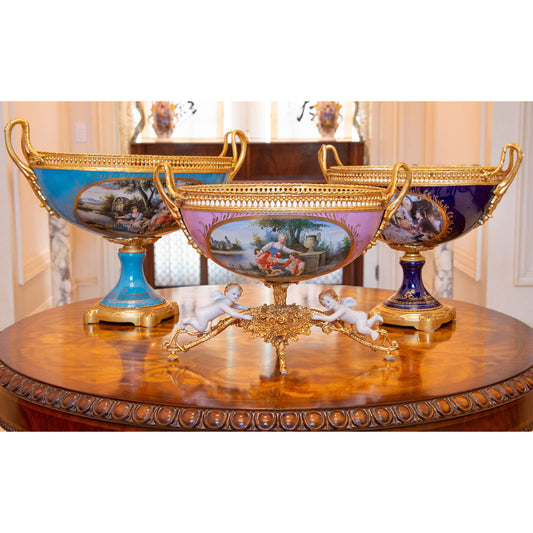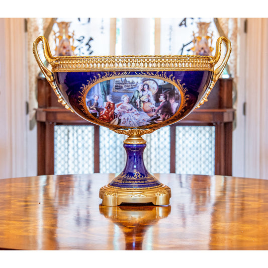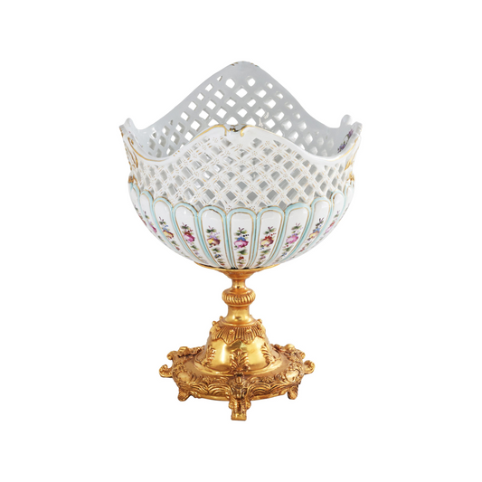 Hand-painted Rococo Porcelain and Bronze Serving Dish