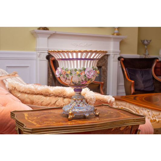 Hand-Painted Rococo Style Porcelain Serving Bowl