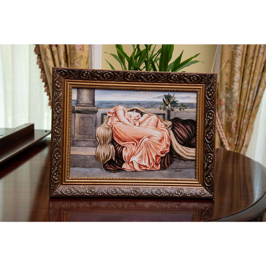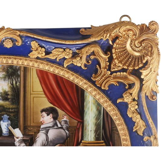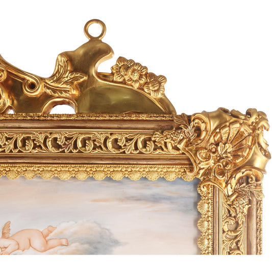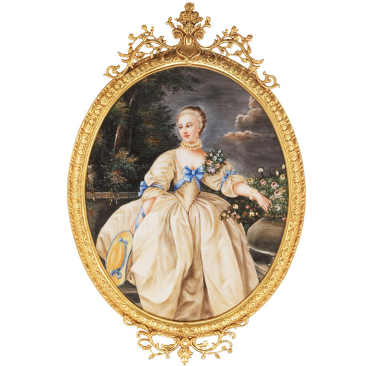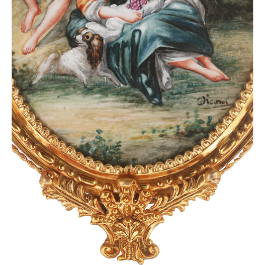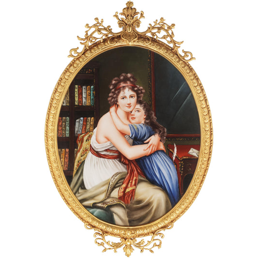 Mother And Daughter Porcelain Painting In Bronze Frame