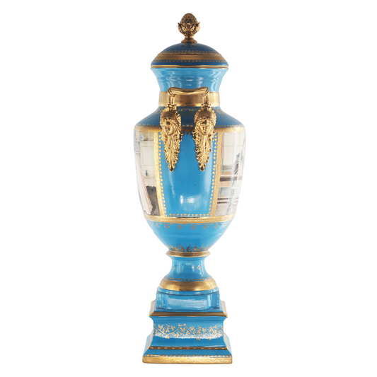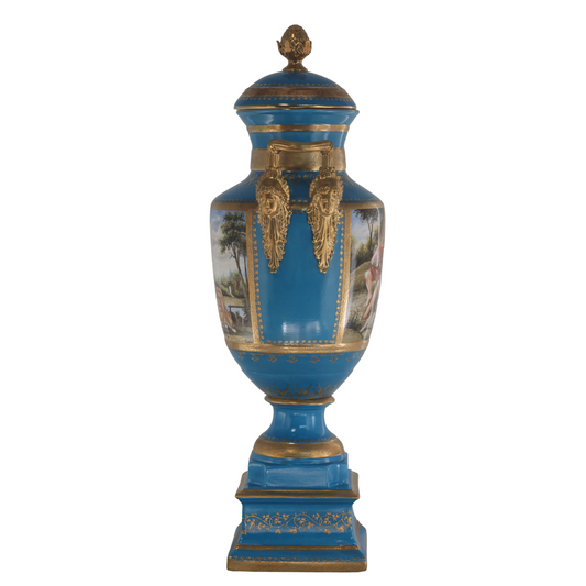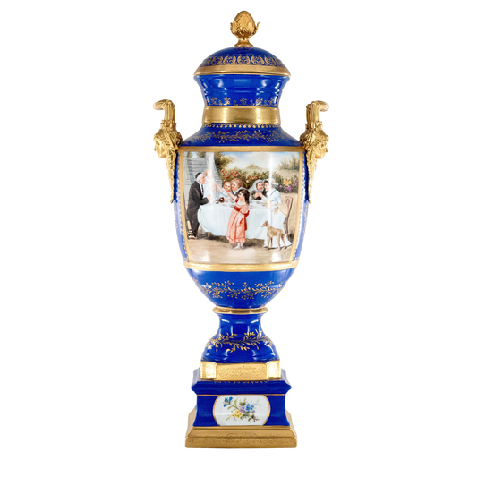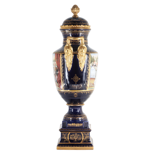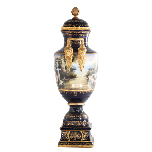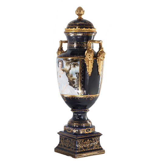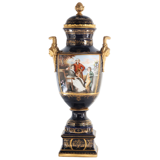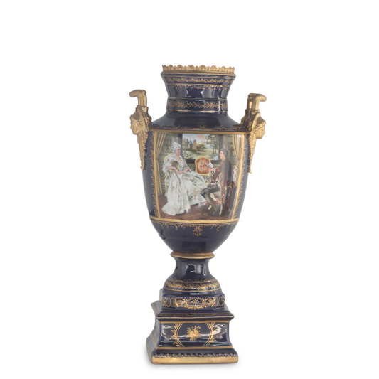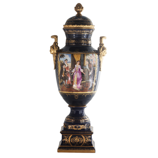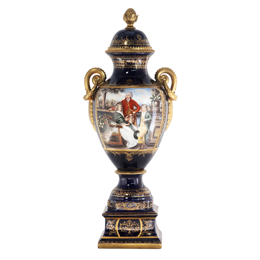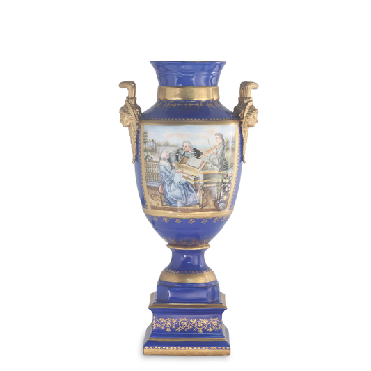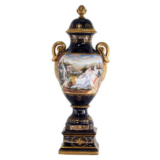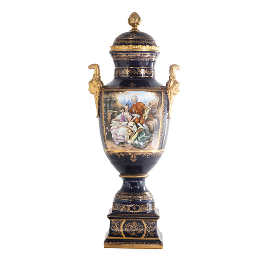 Hand-painted Dark Blue Rococo Style Courtship Vase