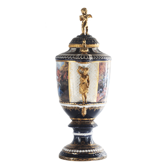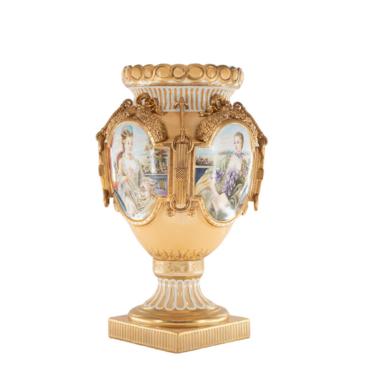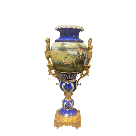 Bronze Handle Hand-painted Rococo Porcelain Vase