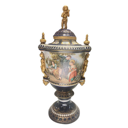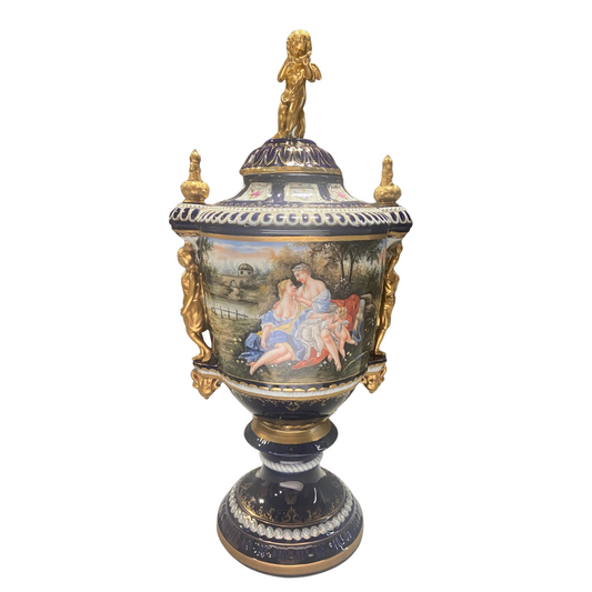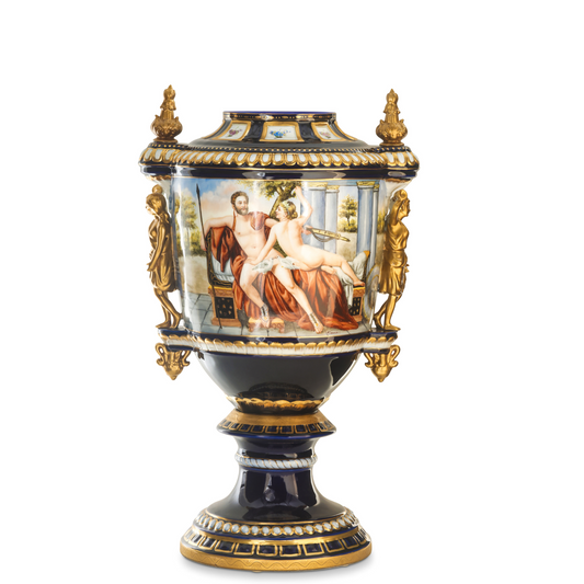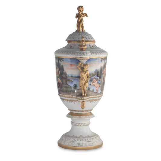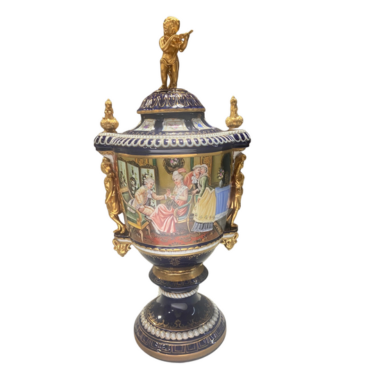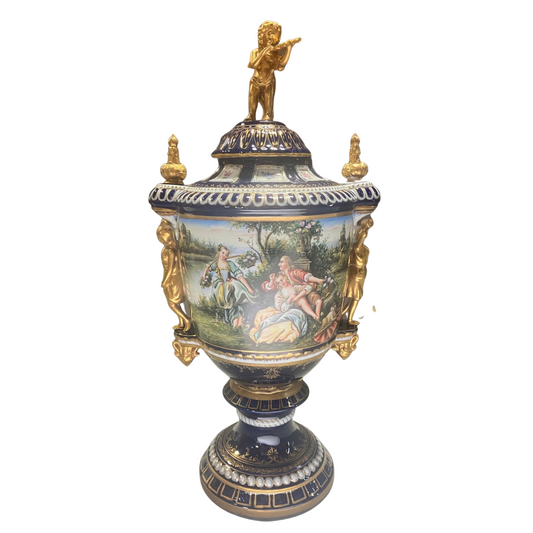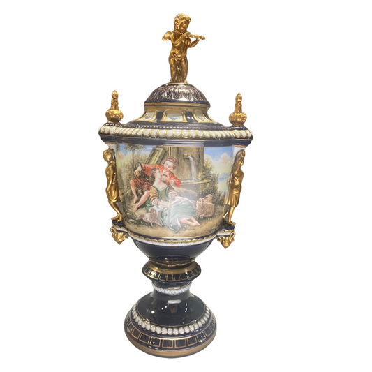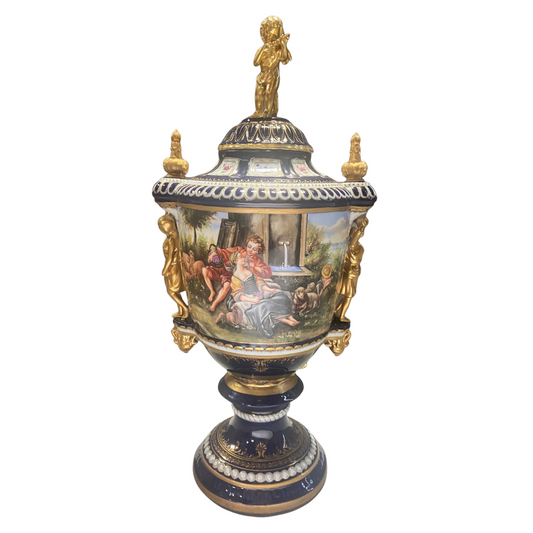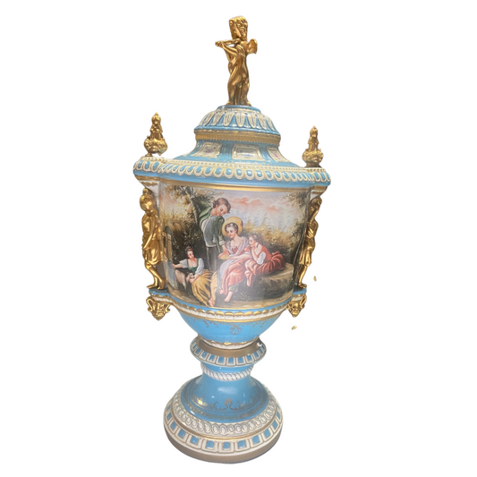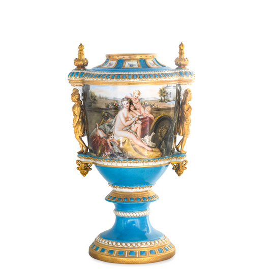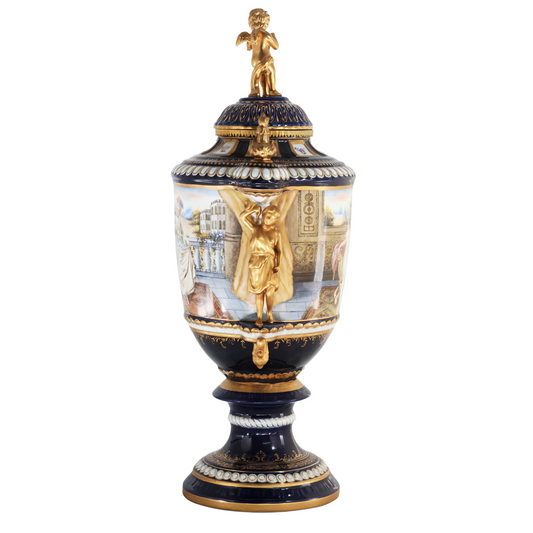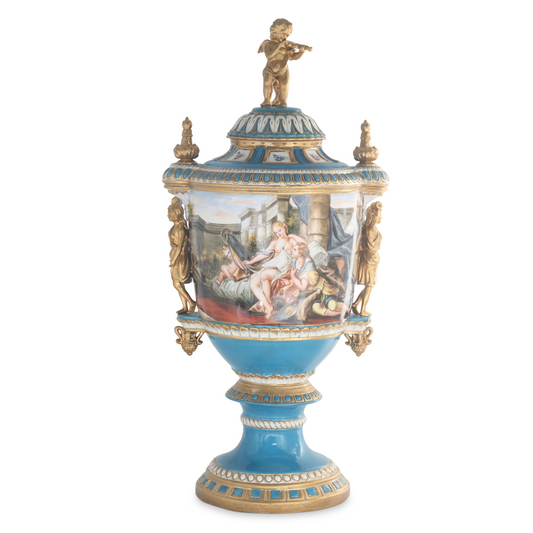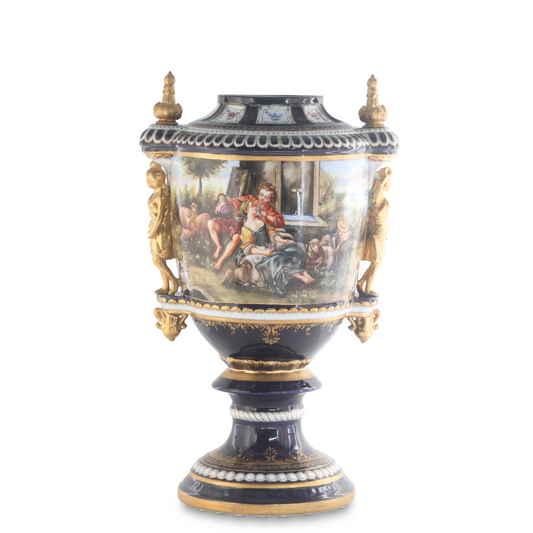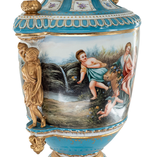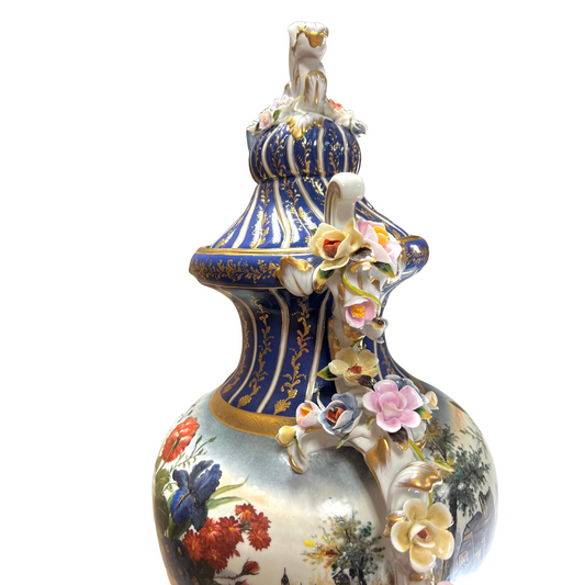 Rococo Hand-painted Porcelain Flower Handle Urn