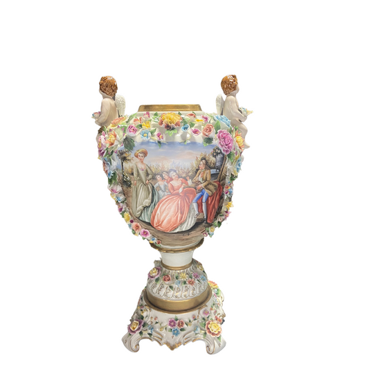 Hand-painted Rococo Three Dimensional Porcelain Flower Urn