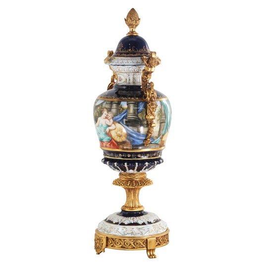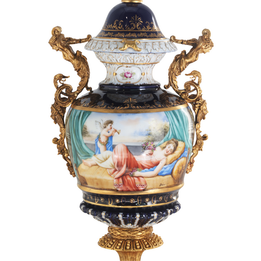 Gorgeous Mythological Hand-painted Porcelain And Bronze Vase
