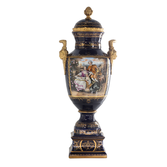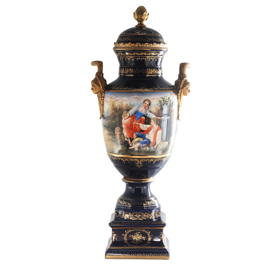 Parrot Lid & Cherub Bronze Handle Hand-painted Urn