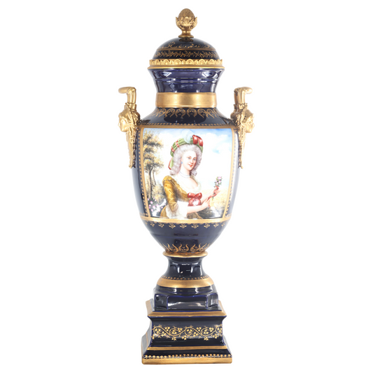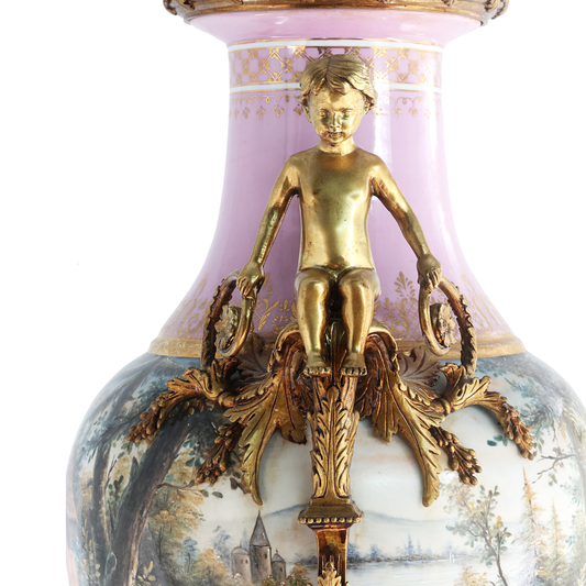 Hand-painted Bronze Handle Rococo Porcelain Vase