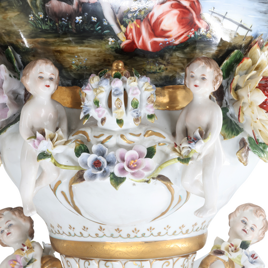 Hand-painted Rococo Three Dimensional Porcelain Flower Urn