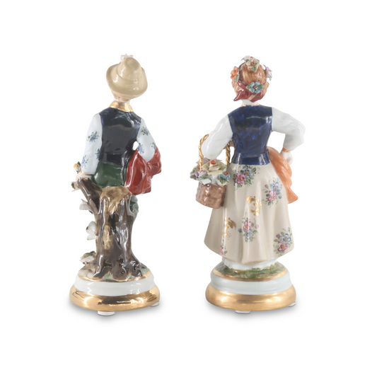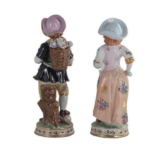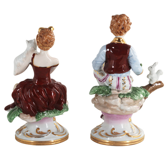 Rococo Style Porcelain Young Girl & Boy Figurine Pair