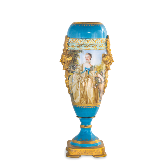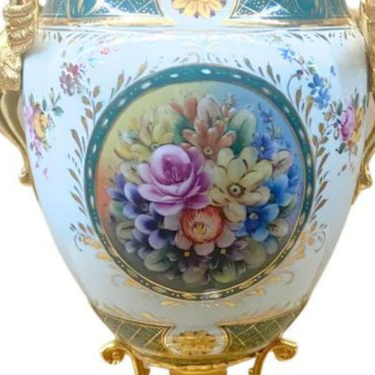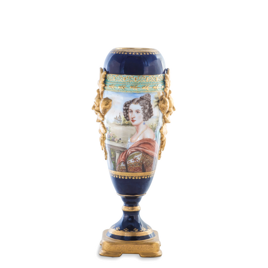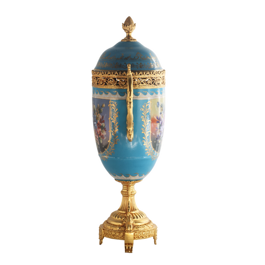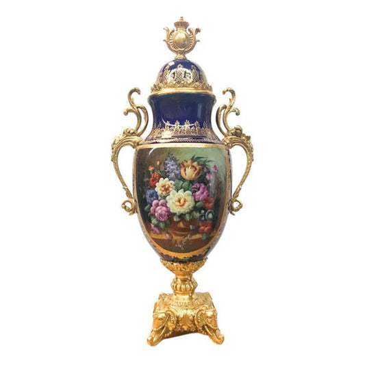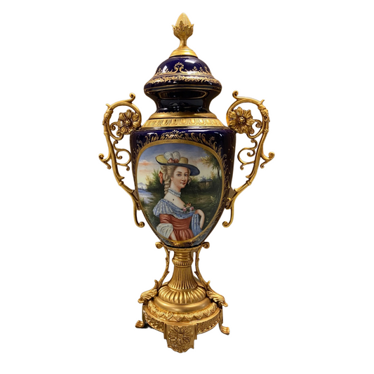 Sold outCobalt Blue Rococo Bronze Floral Urn