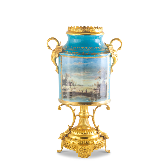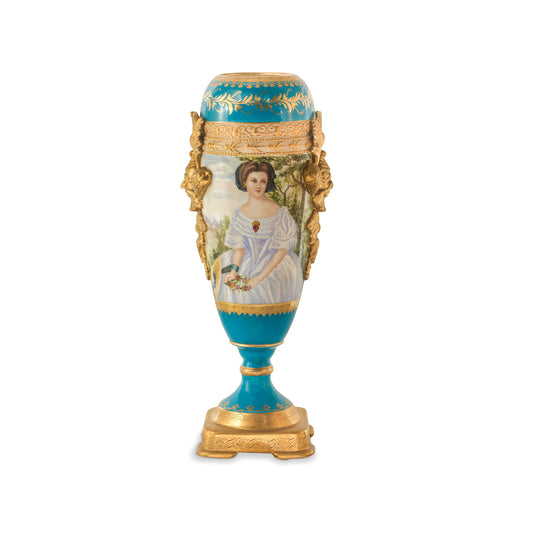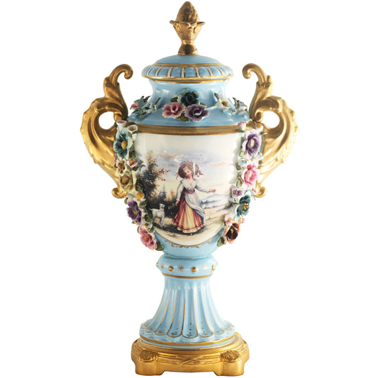 Light Blue Hand-painted Rococo Vase with Porcelain Flowers