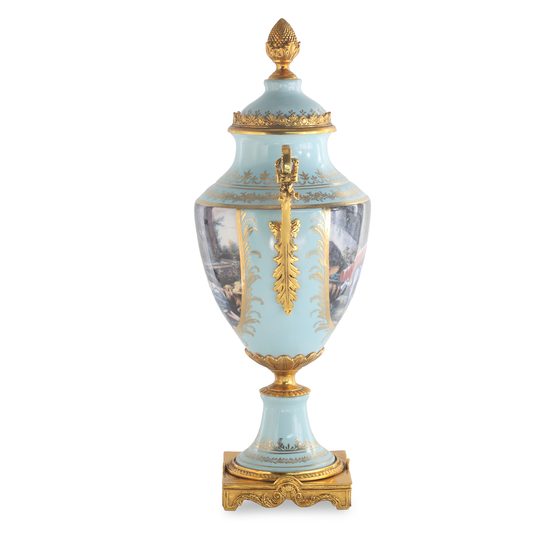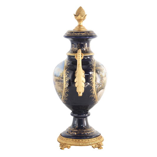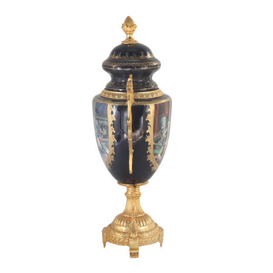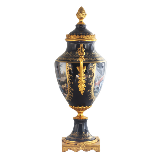 Striking Hand-Painted Victorian Style Porcelain And Bronze Cherub Handle Vase