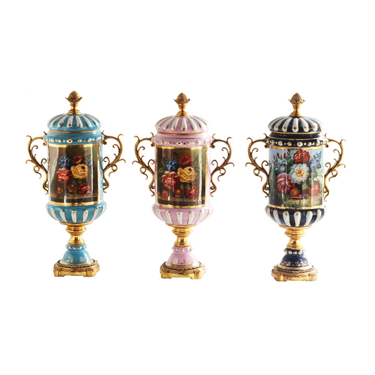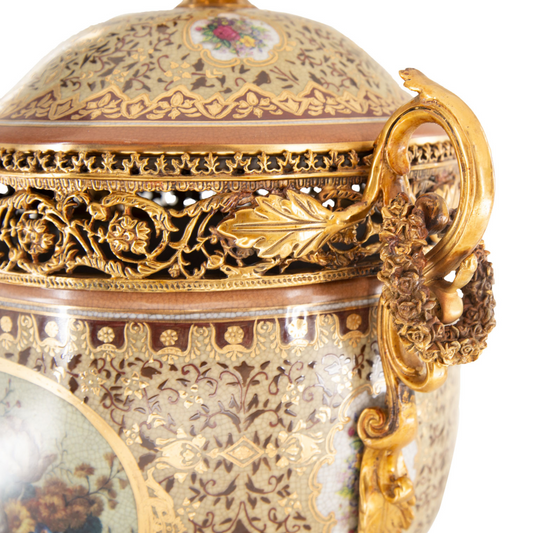 Potpourri Hand-painted Porcelain And Bronze Jar