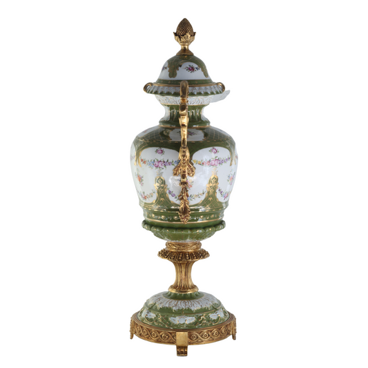 Hand-painted French Style Porcelain & Bronze Handle Vase