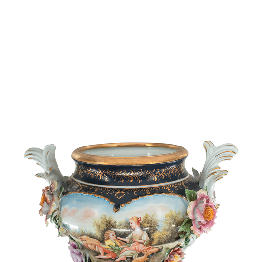 Potpourri Hand-painted Vase with Rococo Motif and Porcelain Flowers