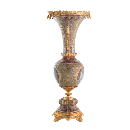 Jarrón estilo rococó con motivo pintado a mano y asas de vid