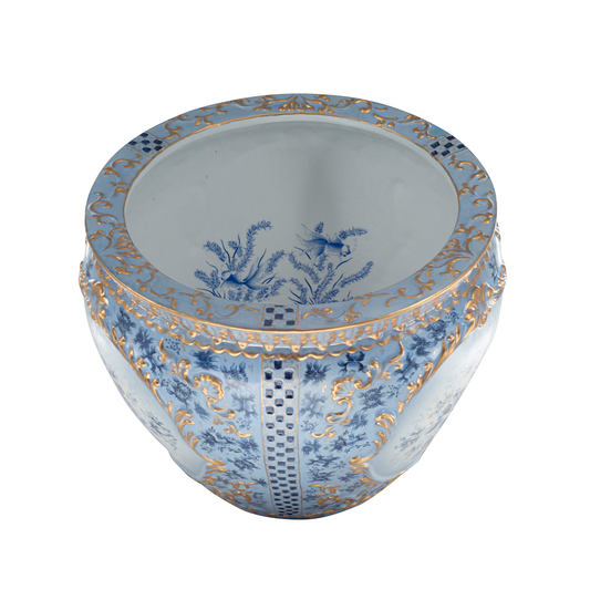 Jarrón Motivo Estilo Rococó en Azul Oscuro