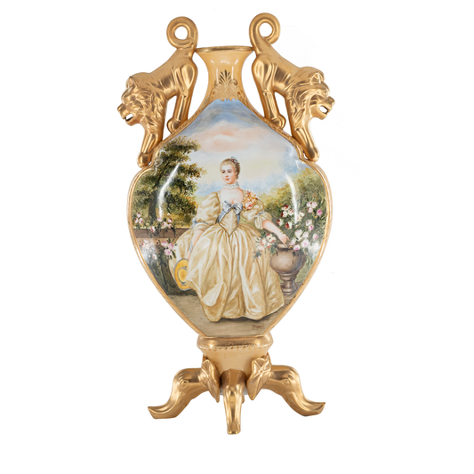 Jarrón de Porcelana Estilo Rococó Pintado a Mano