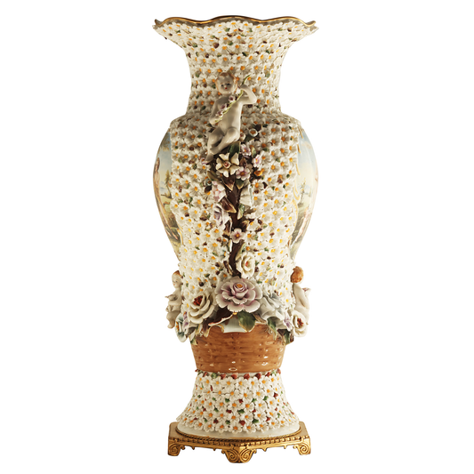 Florero Estilo Rococó con Motivo Pintado a Mano